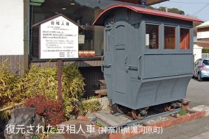 かつて日本各地で「地域の足」として利用された人車の旅客車は、昭和戦前には姿を消し、現在は実物を目にする機会も滅多にありません。しかし、神奈川県湯河原町の和菓子店「味楽庵」を訪れると、大谷に先立ち、熱海~吉浜(1895年)~小田原(1896年)に開業した豆相人車鉄道の復元模型が展示されており、どのような車両だったのかを偲ぶことができます。(次回に続く)